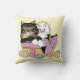 Schattigee tabby lange haar kitten zitten in een paasmand met een roze strik en een gevulde paashaas. Paaseieren rondom de mand.