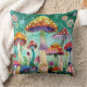 Een levendig bos van grillige, veelkleurige paddenstoelen stijgt tegen een wervelende groene achtergrond. De scène is bezaaid met verschillende soorten schimmels, elk bedekt met spikkels en omgeven door delicate bloemelementen.