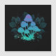 Mysterieuze, bioluminescente, hallucinogene, heldere paddenstoelen met struiken van moerasplanten op nachtelijke, donkere, gloeiende achtergrond. Gloeiende paddenstoelen. Goblincore, Mushroomcore,