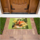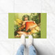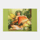 Blauweogige blonde fee die een grote amanita-paddenstoel omhelst om je aan te passen met je eigen groet, naam, bericht, enz.