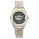 Vrouwen tweekleurig unisex horloge getoond met een optocht koninginnen kroonprint. Pas dit horloge aan of koop het zoals het is.