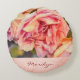 Painterly Pink Roses op Damask Monogramed Rond Kussen