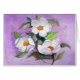 Vet en mooi, wie kan weerstand bieden aan de spectaculaire en geurloze schoonheid van de zuidelijke magnoliumbloem? Drie grote witte magnolia vormen een elegant contrast met de donkergroene bladeren van de magnolia-boom tegen een lavender achtergrond in deze waterverf schilderij. Dit object is afgedrukt op papier van JC Prida van een originele waterverf.