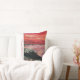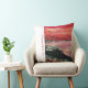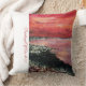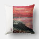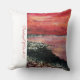 Abstract landschap met een heuvelachtig uitzicht van verlichte stad dat zich uitstrekt langs de kustlijn met rode rozen en witte madeliefjes op de voorgrond onder een roodachtige kleurige lucht. Bevat de kleuren indisch rood, perzik bladerdeeg, donkerrood, zwart, wit.
