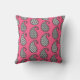 Kussen buiten in een paisleypatroon, in zwart-wit op een diepe fuchsia roze achtergrond