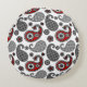 paisleypatroon in zwart, wit en grijze tinten, voorzien van diepe rode letters op een witte achtergrond