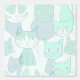 This pattern is special because it takes the popular stylized mid-century modern (MCM) cat motif and restricts the color palette to a sophisticated, cool-toned blend of pale mint, seafoam green, and muted blue. The graphic lines and flat coloring create a calm and cohesive design, making it ideal for chic nursery decor, refreshing bathroom wallpaper, or subtle apparel.