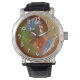Deel je liefde voor fossielen met een prachtig horloge met grote witte getallen in een lettertype in Arts & Crafts-stijl op een prachtig afbeelding van een opalisaties van fossiele ammonietschelp. Dit dier is een Sphenodiscus lenticularis uit het late Krijt en kan op veel continenten worden gevonden. Het heeft een ingewikkeld hechtpatroon en een glad oppervlak.