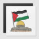 De vlag van Palestina boven de Rotskoepel op een witte achtergrond en op de achterkant de uitdrukking "Vrij Palestina"