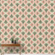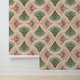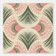 Een gedurfde, zonnige mix van palmbladeren en retro-stijl zonnen in zachtroze, groen en sinaasappel op een crèmeachtergrond - leuk, licht en tropisch.