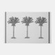Tropische palmbomen in een zwart schetsontwerp. Eiland, strand, kust- of zomerthema. Heeft dunne zwarte zijgrenzen als lijst. Het ontwerp is leuk, en de stijl kan stroperig, klassiek, elegant, modern of retro zijn om elke stijl of locatie aan te passen. De opties, op een zeer lichte grijze neutrale achtergrond of passen aan wit of om het even welke kleur aan. De woorden of de woordtekststijl kunnen worden veranderd of worden geschrapt om duidelijk te verlaten. Keuze uit 2 maten.