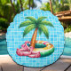 Een zomerse frisse vormgeving met dit azuurblauwe patio tegel motief met onder andere een palmboom en een aantal leuke flamingovogels.