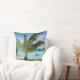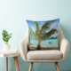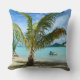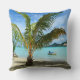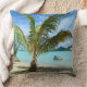 Gooi een kussens met een palmboom op het zandstrand van een luxe overwaterige dakhondvakantie op het tropische eiland Bora Bora, vlakbij Tahiti in het Franse Polynesië van de stille oceaan. Geweldige decoratie!