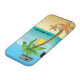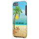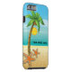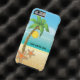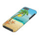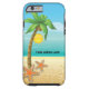 Palmboom en zeesterren tropisch landschap iPhone 6 hoesje met een tropisch landschap: een palmboom met kokosnoot op een zandstrand met zeesterren, blauw zee / oceaanwater en de lucht met de zon en de wolken. Het is een sjabloon en u kunt jouw tekst wijzigen of verwijderen.