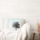 De elegante palmboom maakt deel uit van het bladerdak boven de naam op de gooipijp. Elegant Tropisch design. De palmboom bevindt zich op een achtergrond van modern blauw. De achterkant heeft de palmboom herhaald.