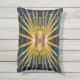 Het originele zonnestraalontwerp op dit Accentkussen is gemaakt van een originele foto van ZoeSPEAK van zaagpalmschijfjes. De groengele schijfjes waaieren uit tegen een donkergroenblauwe achtergrond en vormen een patroon dat lijkt op wandtapijtstof.
