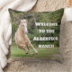 Verlaat één of verscheidene van deze comfy kussens op uw gastbed, gastbank of recliner om bezoekers aan uw huis welkom te heten. Een Palomino-paard graast de voorkant van de kussen en de welkomsttekst kan worden aangepast aan uw voorkeuren. De rug is neutraal bruin maar kan ook worden veranderd.
