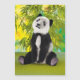 3D digitale render van een panda beer en groene bamboe planten op een kleurrijke achtergrond