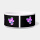 Deze geweldige dierenkom bevat een foto van een wilde Pansy-bloem. De foto is kunstmatig gekleurd, wat resulteert in een pansie met gloeiende roze paarse bladen met groene uiteinden en een diep blauw centrum. De achtergrond is zwart om de bloem te laten opvallen.