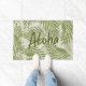 Papkolea Beach is een van de kleurigste stranden in Hawaii, gelegen op het zuidoosten van de Big Island. Het zand is groen als gevolg van de minerale olifant van de vulkanische cinderkegel. We creëerden dit ontwerp vanuit de inspiratie van de kleuren van dit strand en voegden palmen toe die de boringen overhead aanjagen. De kleuren zijn schaduwen van palmgroenen en zandige natuur. Onze vloermat zegt: "Aloha" die je gasten welkom heten in je mooie strandhuis!