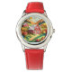 Breng je horloge naar het volgende niveau met deze schattige boerderijscène in papieren ambachtelijke stijl. Deze scène bevat bomen, een huis, een rode schuur, bergen, wolken met een papieren ambachtelijke origami-stijl.