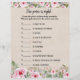 Baby shower spel "De prijs is goed" Raad de prijzen van deze baby essentials. Degene die het dichtst bij de echte waarde komt, wint. Het Baby shower Game-papierblad is voorzien van schattige waterverf-rozen.