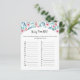 Papier Blad spel "Baby Item ABC" voor baby shower.