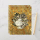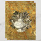 plakboekpapier heeft een gekleurde teapottenafbeelding met bladeren en vlinder op een gouden, noodlijdende ephemerachtergrond