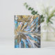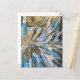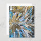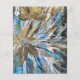 Het schilderij toont gouden bloemen tegen een abstracte blauwe achtergrond. De bloemen hebben een rijke, metaalachtige glans die prachtig contrasteert met de verschillende tinten blauw erachter. De blauwe achtergrond is vloeiend en gestructureerd, met gradiënten variërend van diep azuurblauw tot lichte hemeltonen, waardoor een droomachtige, etherische sfeer ontstaat. De bloemen, met hun ingewikkelde bloemblaadjes en delicate details, lijken te zweven of bloeien in deze serene ruimte, waardoor het afbeelding zowel warmte als rust krijgt. De algehele compositie voelt evenwichtig maar dynamisch aan, met een gevoel van harmonie tussen het levendige goud en kalmerend blauw.