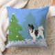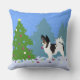 Papillon Dog Decoreert kerstbomen in het bos Kussen