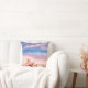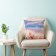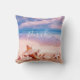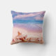 Mooie romantische kapper met zachtroze zandige schelpen op het strand. De golf spoelt de kust zachtjes, roze wolken drijven in de blauwe lucht. De sfeer van paradijs en sereniteit.