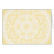 Deze witte mandala zit op een lichtgele achtergrond. De kleuren zijn gelukkig en vreedzaam. Deel van het Bardh Mandala Collectie.