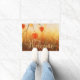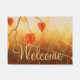 Een zilverspinweb bedekt met mousserende dauw druppelt glitters in het warme zonlicht van een gouden herfstochtend. De laatste oranje bladeren van een boom hangen achter het Web, weerspiegeld in de druppeltjes.
