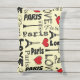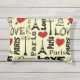 Ontwerp van de Parijse tekst voor Valentijnsdag met rode hartvormen, Eiffeltoren en straatverlichting op gele achtergrond