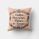 Antiek Franse handelsillustratie met decoratieve rand en tekst waarop Cafes, Chocolat, Pates et Sirops (koffie, chocolade, pate en stroop) staan afgebeeld. Mooie decoratieve kussens in de Franse landstijl. De achtergrond is een zachte roze met de subtiele verschijning van textuur en enkel een wenk van een antiquing effect. Afbeelding is aan één kant, heeft andere eenvoudig de mooie lichtroze kleur en het antiquing effect. Deze kussen zijn verkrijgbaar in twee formaten, het 20 x 20 inch vierkant en de lumbale (rechthoekige) stijl, die 13 x 21 inch is. Wat een mooi kussen voor elk shabby-kerkhof of een parisiaans stijldecor! We hebben een hele reeks kussens die deze in onze winkel aanvullen.