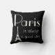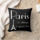 Een schattige Parijse kussen met het gezegde "Parijs is altijd een goed idee" en een afbeelding van de Eiffeltoren. Pas de achtergrondkleur aan om het even welke van uw keus aan!