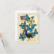elegant romantisch feministisch digitaal collage van een pauw-vogel en blauwe vlinders en eiffeltoren , Parijs, Frankrijk op een papieren briefkaart achtergrond en Frans stempel met gouden fleur de lys. copyright Oconnart