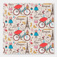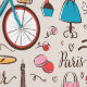 Dit ontwerp is voorzien van een patroon met de Eiffeltoren, een meisje op een fiets met een beret, koffie en een lekkere Parijse lekkernij.