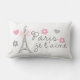 De mooie eiffeltoren trekken met een groot roze lintje bovenaan. Meisroze en grijze bloemen en kleine roze harten overal. Schriftelijk "Paris Je t'aime" in fancy lettertype.