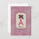 de zwarte en witte polka stipboog op de roze Eiffeltoren, geplaatst op een roze en witte poka stipachtergrond met Parijs in roze gekraakt.