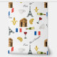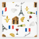 Icons van het Parisiaanse leven: Eiffeltoren, Arc de Triomphe, Franse vlag, en natuurlijk koffie, croissants en wijn.