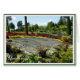 Uitzicht in een mooie tuin. Rode en gele bloemen, palmbomen en cypersen. Water. Foto genomen in Flor and Fjaere Park, Stavanger, Noorwegen. De volledige reeks diverse inbegrepen lijsten, voelen vrij om hun orde te herschikken om met nieuwe kleuren en gevolgen te spelen! De tekst kan worden uitgegeven of worden verwijderd.
