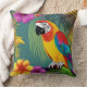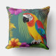 Parrot Bird Tropical Floral palms blauw paars rood Kussen