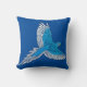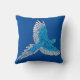 Gooi kussen met een Amazon Parrot in vlucht - ceruleen blauw en wit tegen een diepe kobaltblauwe achtergrond - digitaal verbeterde fotografie