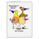 Grappig uitziende vogels die een verjaardagsfeest bijwonen met hun feestelijke petten die op hun piepen hangen, omdat ze geen idee hebben hoe ze partijgebonden petten moeten gebruiken. Dit grappige afbeelding zal zeker een glimlach geven op iemands verjaardag.