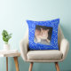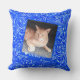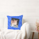 Pas het omgevormde kattenhuisje over blauwe textuu kussen