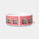 Een moderne keramische kattenbak die u kunt aanpassen met de naam van de kat. Ontworpen in zwarte, roze en grijze kleuren met kattengezichten