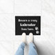Eenvoudige, zwarte en witte deurmat. Welkom uw gasten met deze leuke mat, die luidt: "Wees een gekke Labrador die hier woont." Compleet met polaire afdrukken. Ideaal voor hondenliefhebbers, met name voor Labrador-eigenaars.