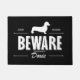 Dit gedurfde wit-op-zwarte ontwerp laat je bezoekers weten waar ze tegen zijn voordat ze ooit voet in je huis zetten. Met een silhouet van een Wirehaire Dachshund met de tekst: Let op: Gepatroleerd door Doxie. Geweldig plezier en een schone zoektocht naar je voorste porie of stoep. Komt in twee maten en vele rassenkeuzen!