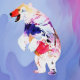 Pastel Arctic Explorer in aquarel. Een prachtig en fantasierijk polair beer dat avontuurlijk, creatief en zacht, dromerige kleuren van blauw, paarse en roze omarmt voor een magisch kinderthema.